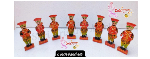 Laddu gopal ji mandir decoration band baja set in wooden MDF board/Wooden band baja set for laddu gopal ji/6 inch size set of 8 piece for laddu gopal ji Size 6 inch Total pieces in one set 8